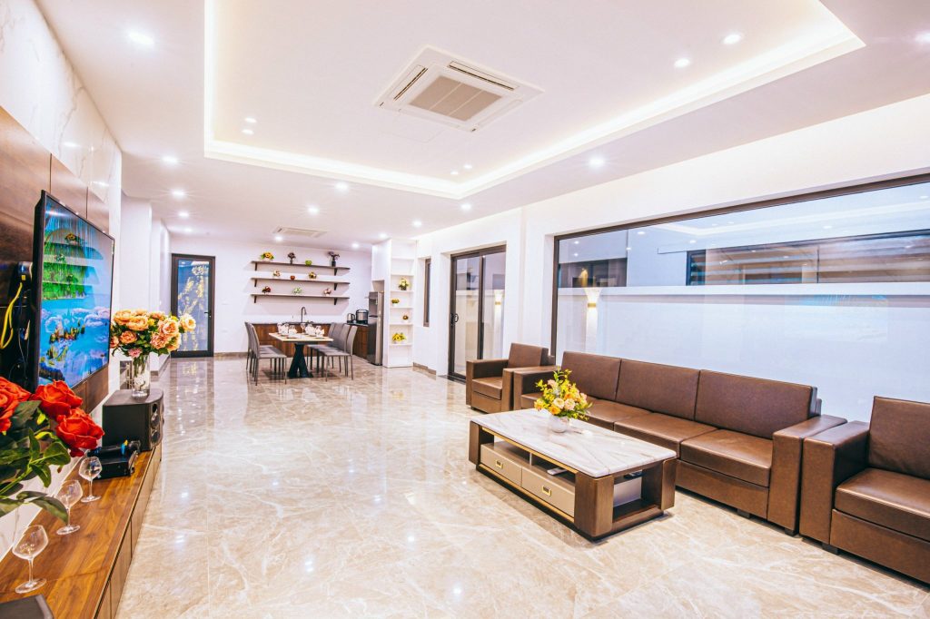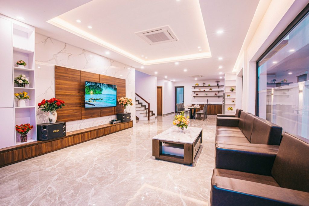 ✓ 1 phòng khách rộng : Tivi 65in, truyền hình internet TV, Điều hòa, Quạt cây, Wifi, Bàn ghế tiếp khách uống trà, Karaoke, WC